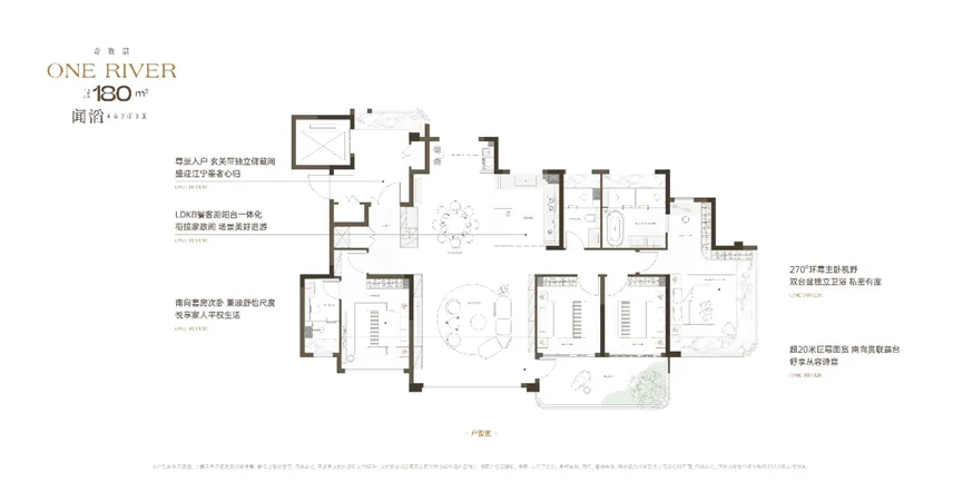 万流江宁在户型设计上,最震撼人心的一笔便是其270°的端厅视野。