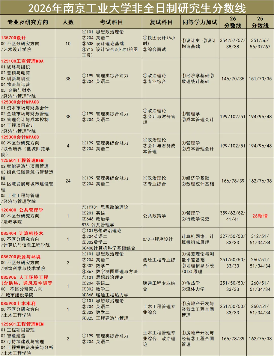 今天重点梳理南京工业大学26年非全日制研究生,涵盖工科、经管、设计、公共管理等19个热门专业,汇总分数线、学费、学制核心信息,额外补充专业难度、推荐指数和适合人群,精准匹配不同基础、不同需求的考生,看完直接锁定适配专业!