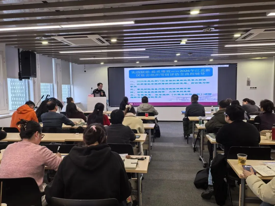 3月17日下午,南京江北新区迎来了一场聚焦社会组织高质量发展的专题盛会。受南京江北新区民生保障局诚挚邀请,南京民办教育协会副会长兼非学历教育分会会长朱龙杰教授,为全区即将参与2026年社会组织等级评估的负责人及业务骨干,带来了一场题为《社会组织评估的新政策变化及迎评准备的要点》的精彩讲座。