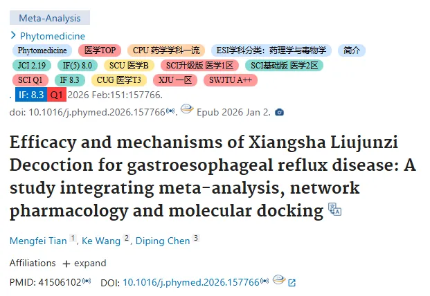 📢 这篇香砂六君子汤研究《Phytomedicine》打了个样👍。