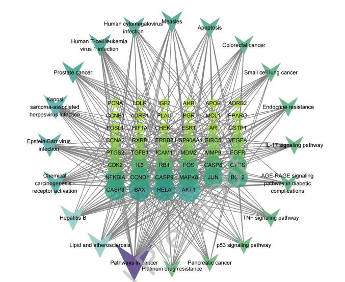 🔔15.香砂六君子汤治疗反流性食管炎关键靶点与Top 20 KEGG通路的网络关系
