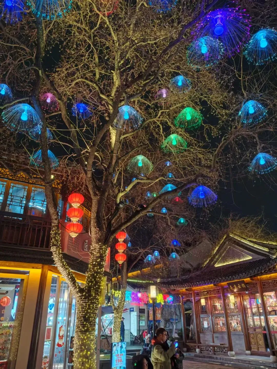 游人往来不绝,笑语轻扬,却丝毫不显喧嚣,反倒在灯火里生出几分从容与欢喜!