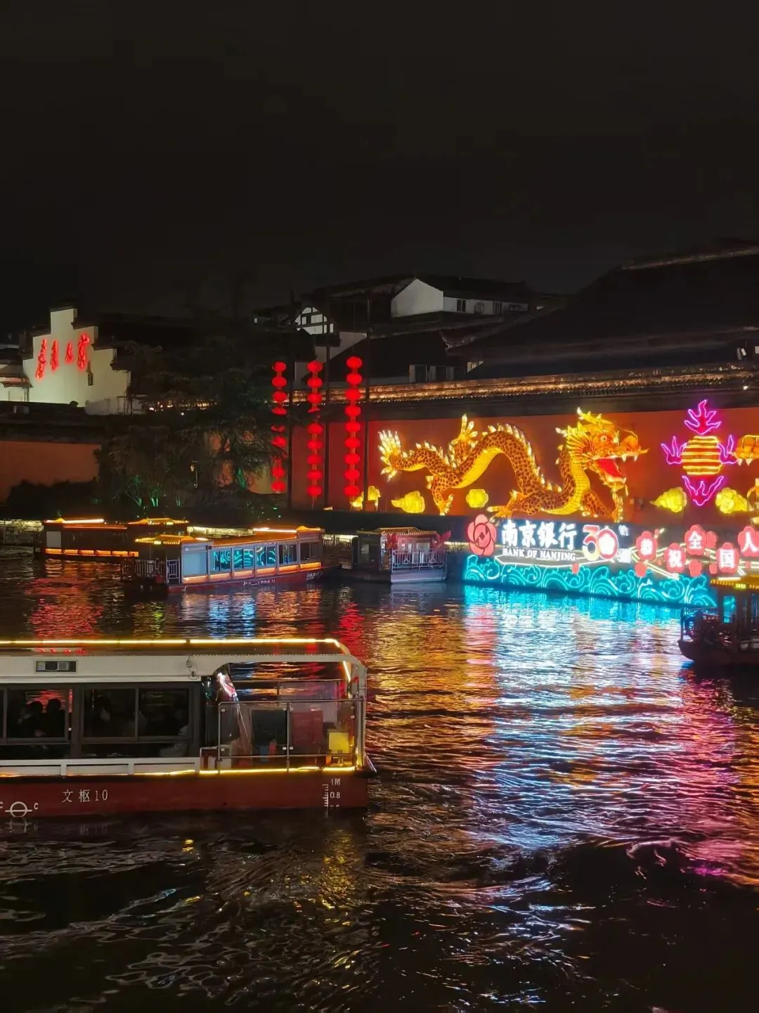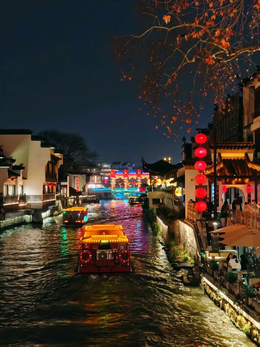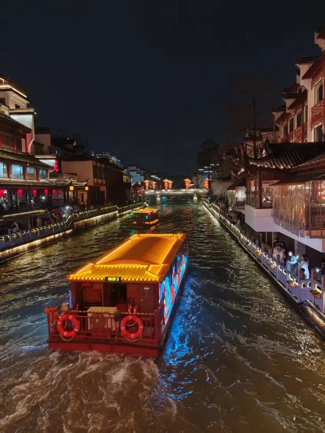 夜色中的秦淮河,灯影摇红,画舫凌波,灯火入水,防似碎作一河的星光!美的那么的让人悸动、不真实!