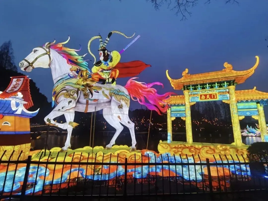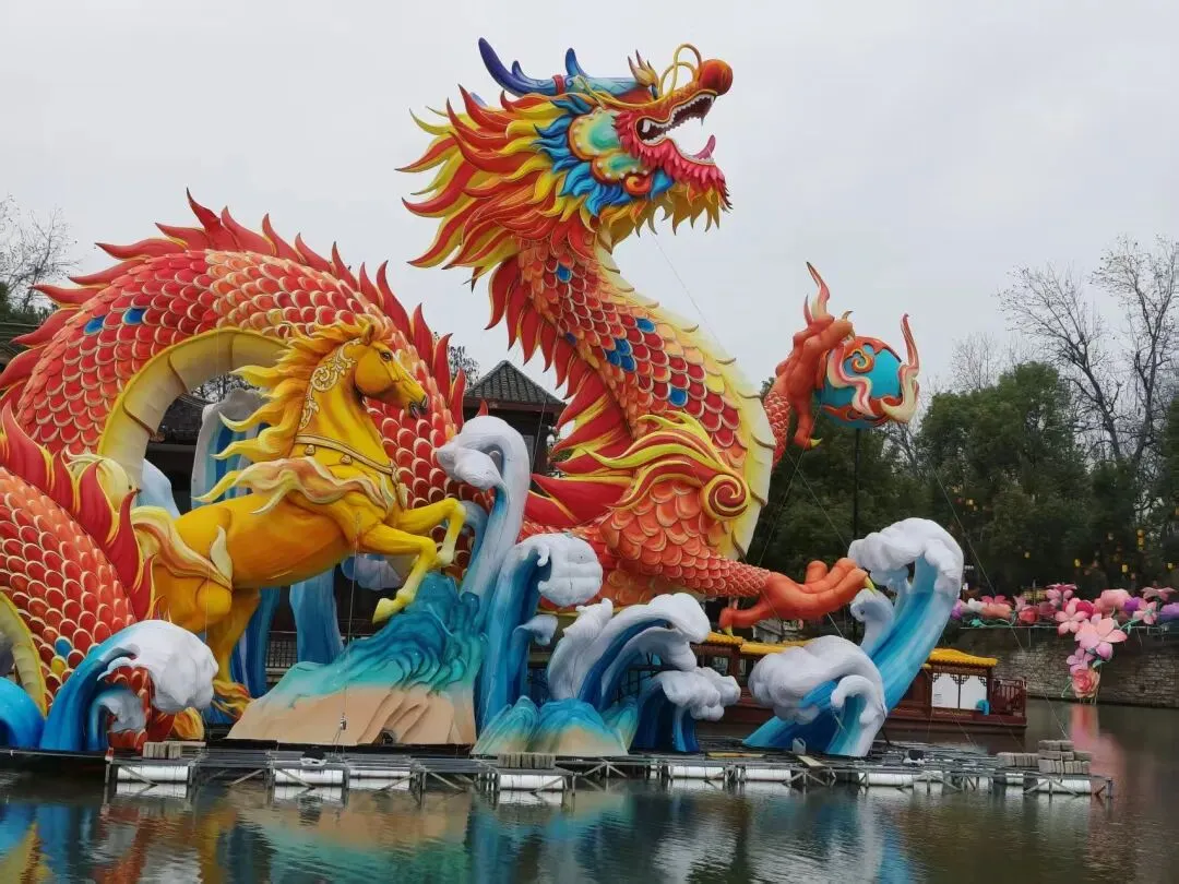 五马化龙漫步园中,耳边有水声与轻风,眼前是各个灯组的璀璨绰约,心也在跟着融入再融入、沉浸再沉浸!