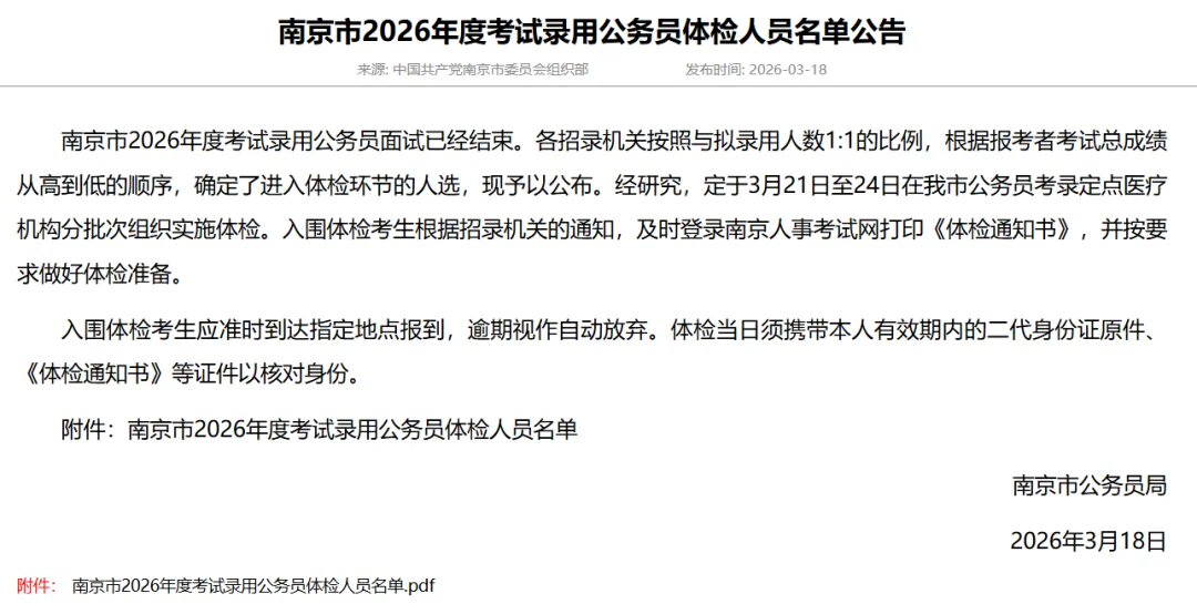 南京入围体检名单