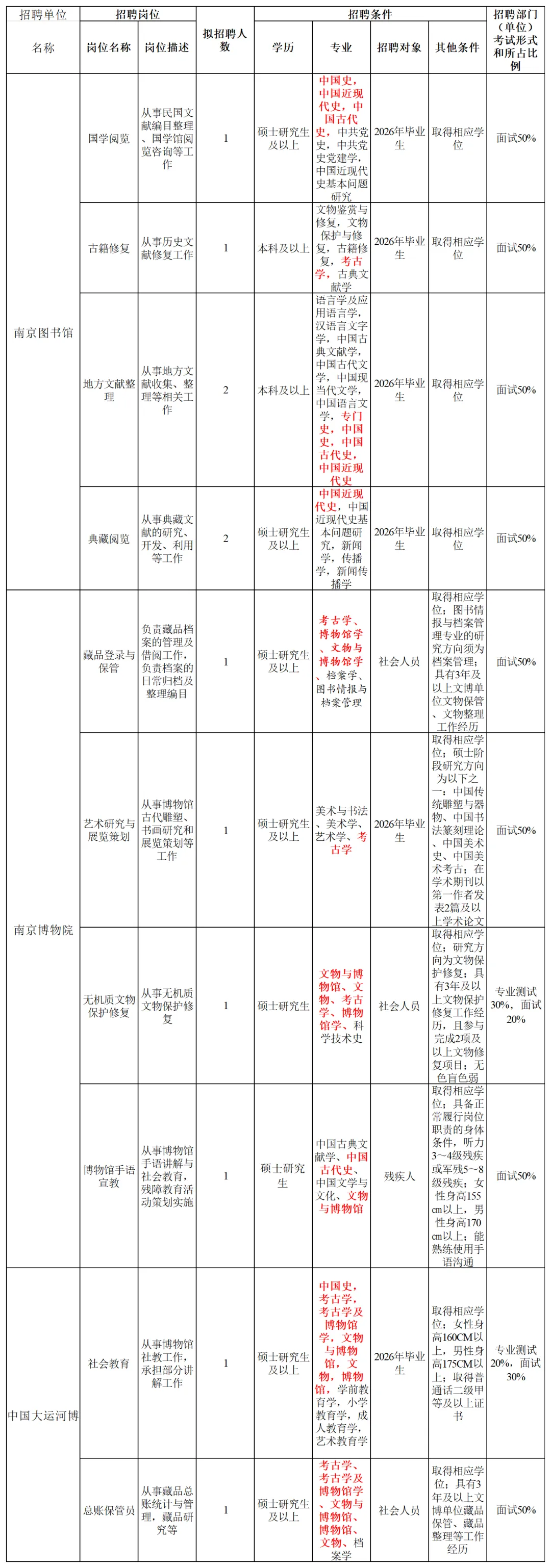 具体岗位及各岗位招聘条件等见《2026年省属事业单位统一公开招聘岗位表》(附件1,以下简称《招聘岗位表》)。《招聘岗位表》可在江苏省人力资源和社会保障网(jshrss.jiangsu.gov.cn)上查阅。