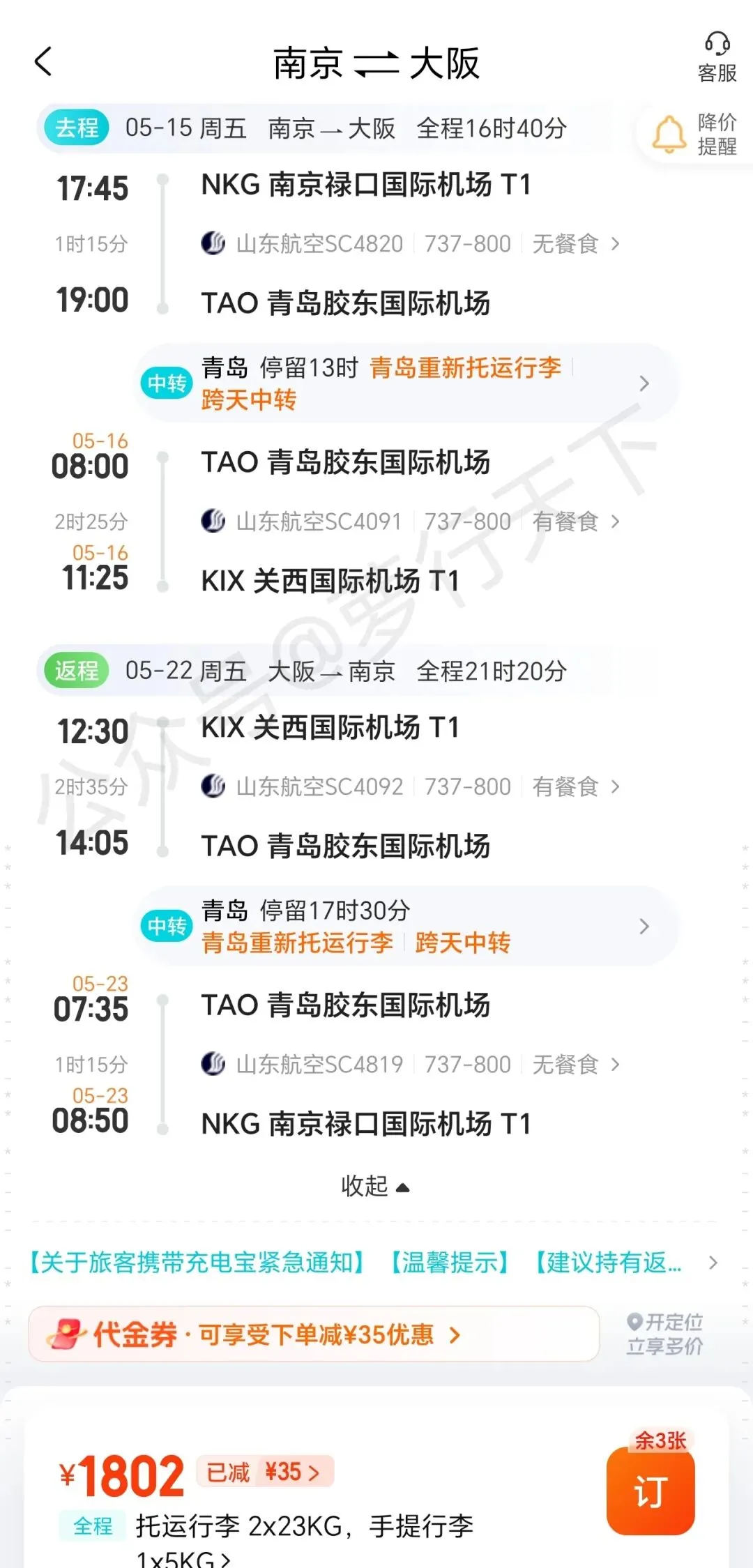 >机票 | 南京往返日本大阪低至1K8