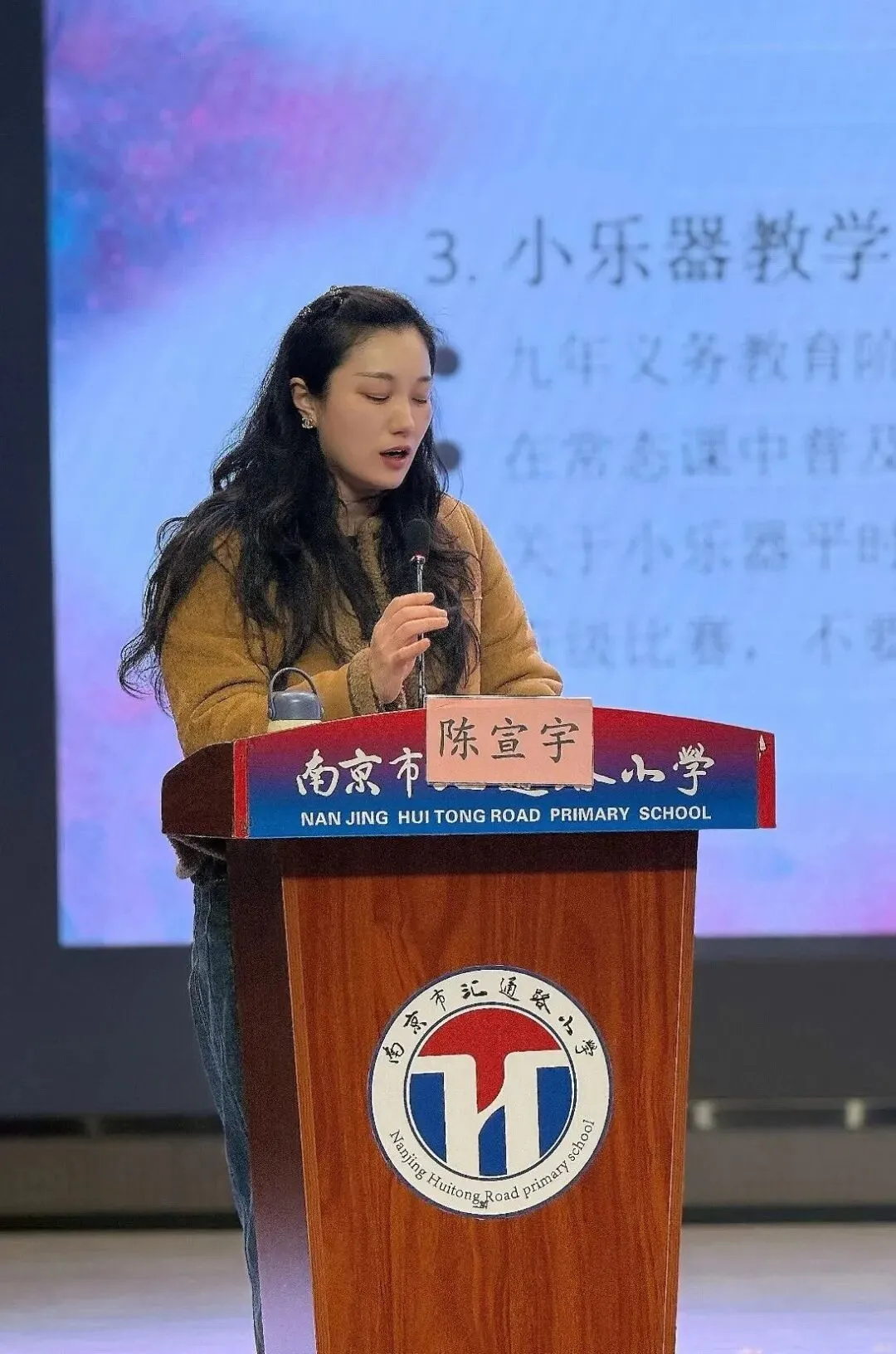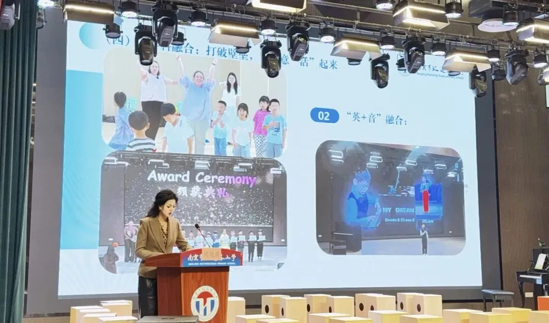 精彩的课堂展示后,顾晓丽校长带来专题讲座《听见生长的声音 —— 让每个孩子在音乐中 “汇” 见闪亮的自己》。讲座中,顾校长结合汇通路小学 “每一颗星星都闪亮” 的办学主张,围绕音乐育人的核心价值、学科融合的创新路径、家校社协同的育人模式及科技赋能的实践探索等关键维度,展开系统分享。她以 “以美润心、以乐育人” 为核心,传递了音乐教育滋养心灵、启迪创造、完善人格的深层价值。整场讲座既有理论高度,又有实践细节,为全区小学音乐教育工作提供了清晰的思路和可借鉴的经验,引发在场教师的深度共鸣与广泛思考。