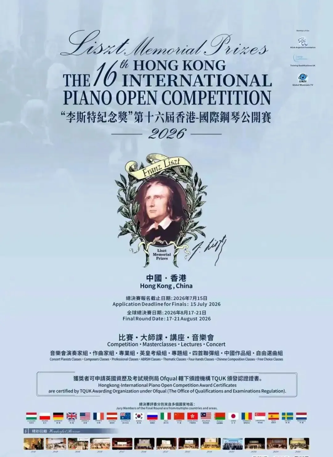 自2011年為紀念李斯特誕辰200周年創辦以來,這項每兩年一屆的賽事已成為國際古典音樂界極具影響力的權威平臺,獲AAF國際賽事基金會與英國TQUK雙重認證,證書獲全球多個國家資歷架構認可,是音樂深造的"黃金門券"。