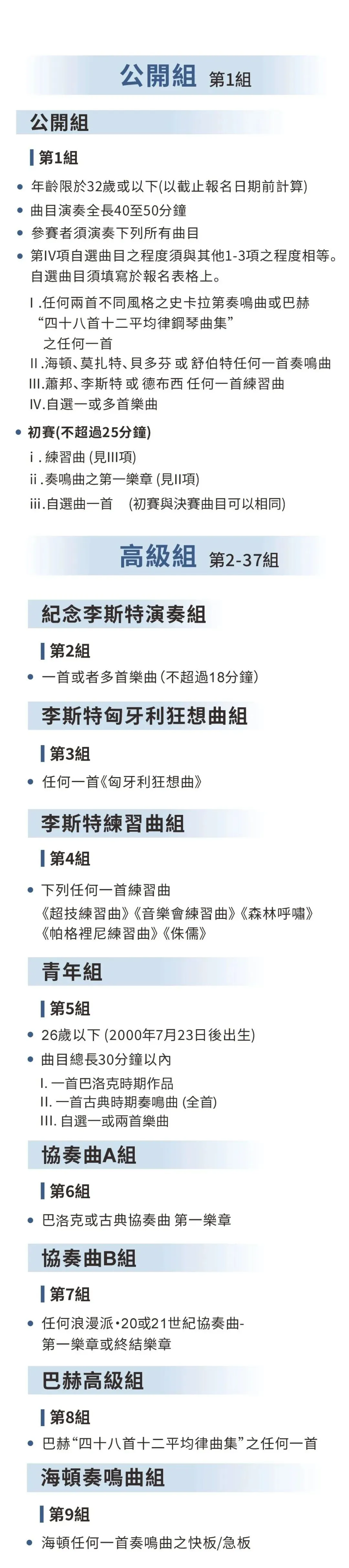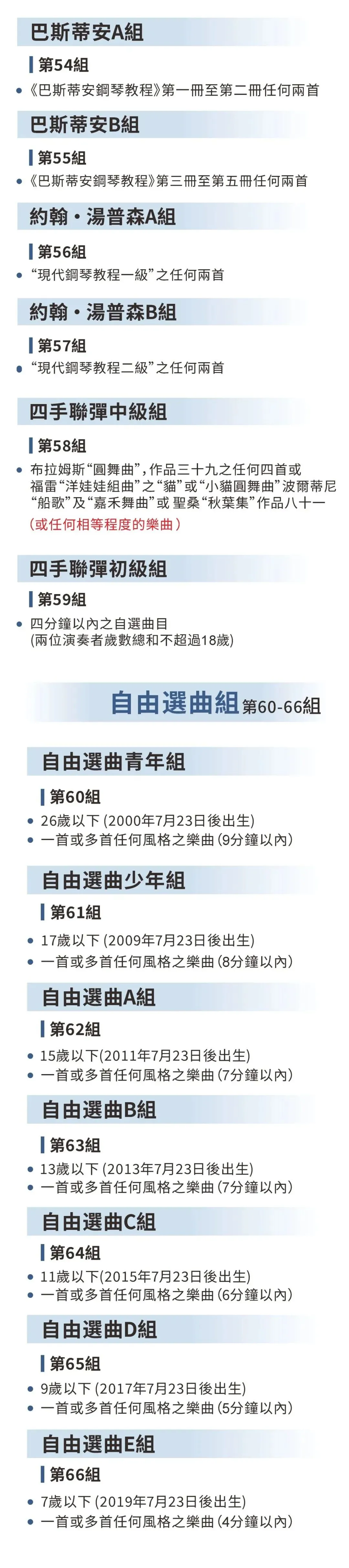 ✅ 多元參賽通道:全球多地實體線下選拔賽+全球線上視頻初選,兼顧便捷性與儀式感,協奏曲組別專屬線上通道一鍵直達;