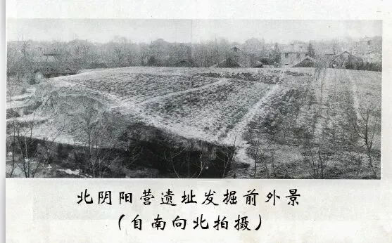 北阴阳营遗址的发现地,正好在一个大土墩上面,高出地面4米,成椭圆形,东西长约700米,南北长约400米,发现时已经不完整,估计这个土墩原来要比发现时大出一倍左右,它的东面是鼓楼岗,也是一个隆起的大土墩。这一带在地质上属于下蜀系黄土阶地,海拔25米。再向东北连接的傅厚岗,与钟山(紫金山)向西延伸的北极阁山相接,遗址就在这条岗脉西端的砥平地带。它的上部已被削平,海拔仅12—18米。金川河自南向北流经它的西侧,直抵长江。遗址尚存面积约7000平方米,从它的四周地理环境观察,在整个南京市内还是比较高的一片台地。早年周围还有不少水塘,丘陵起伏,林木茂密,是很适合人类居住的地方。解放以前,人们认为长江以南没有古代文化,中华文明发源地源于黄河流域,因此这里没有古代人类活动。从1950—1953年,我们在南京城内所发现的文物古迹,最早也是到六朝时期,古代文献上记载南京的古代历史也是上溯到春秋战国时期。到了1954年发现北阴阳营遗址后,才真正地发现了南京最早的一个原始社会人类居住的村落遗址,所以对于这个发现,我们称之为“南京历史的黎明”。尽管我们在1950年曾在南京市郊江宁的秦淮河畔,发现过湖熟文化遗址,但其时代相当于商周到春秋时期,而北阴阳营遗址的发掘,上层属于殷商,下层属于新石器时代,且早于江宁的湖熟文化。