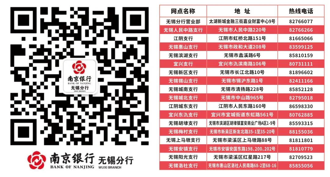 关注南京银行无锡分行微信,更多内容实时知晓!
