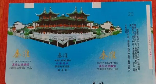 蓝色背景、两座绿瓦屋檐,图中这个叫淮安烟,名字和江苏那座城正好对上,爸工作调动到淮安时带回来两盒,没舍得抽,放柜子好几年,等亲戚见面才分了去,说是味道其实一般,可包装上画的古楼太有江南神气,烟民嘴里都夸,咱们南京出的烟真是会做面子货,现在别说抽,就是拿出来看一眼都得掸掸灰,基本进了收藏摊。