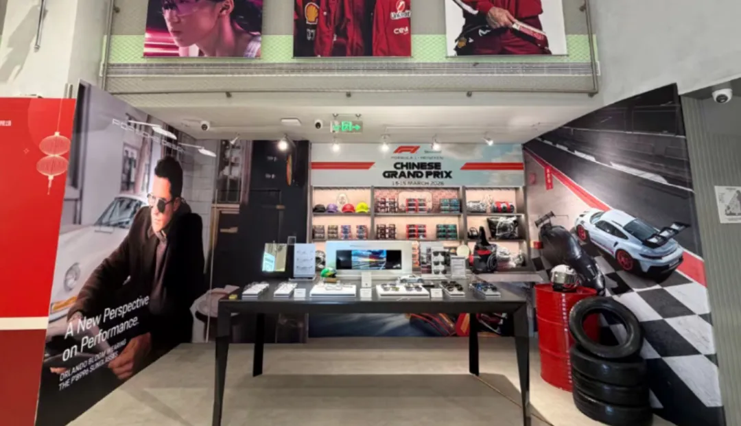 如果你也是车迷,在看完两辆明星展车后,还可以顺路去旁边的“via·1719吴良材新视场快闪店”逛一逛。这家以F1为主题的快闪店同样登陆南京路,将赛车元素与百年眼镜品牌跨界融合,为市民带来“速度与视野”的双重体验。