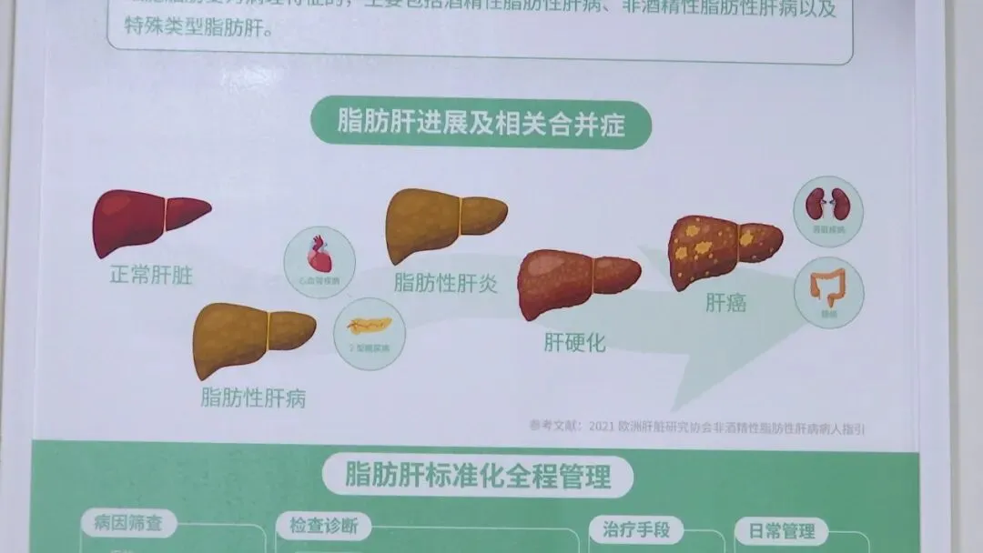 脂肪肝已成为我国最常见的慢性肝病,与肥胖、糖尿病、长期久坐不动等生活方式密切相关。南京市第二医院肝病科主任医师黄平表示,现在脂肪肝出现年轻化甚至于低龄化,一些儿童长期吃油炸食品、喝高糖饮料,在儿童期就可能造成脂肪肝了,而脂肪肝病程相对比较长,在年轻的时候可能是轻度或中度脂肪肝,不去管,那么经过10年、20年,到了中年以后,因为反复炎症的刺激,有可能一发现就是肝硬化。