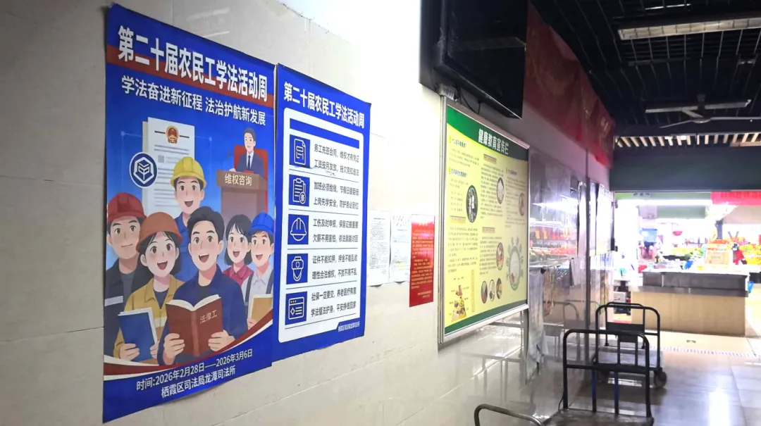 线下阵地“面对面”。除了在招聘会现场发放民法典、法律援助法、保障农民工工资支付条例等宣传手册外,工作人员还通过悬挂横幅、摆放展板、张贴海报等形式,让法律知识触手可及。