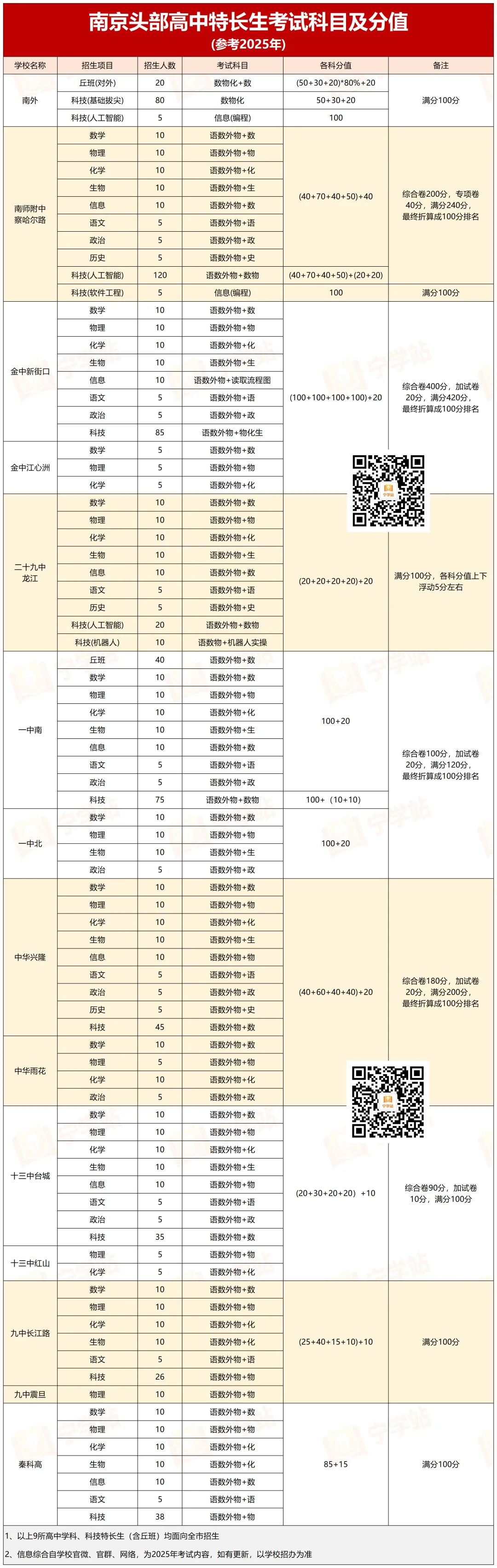 去年,南京30多所高中招收学科/科技特长生,除了南师附中、南外等头部高中外,南京一批腰部潜力高中也招收。所以对于成绩中上游的非头部牛娃,也是可以去报名这些学校的特长生的!