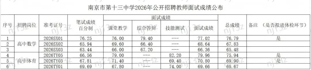 南京教师招聘||南京师范大学附属中学2026年1月公开招聘教师面试成绩公布