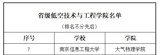 在江苏省教育厅等五部门联合发布的《省教育厅等五部门关于公布省级低空技术与工程学院名单的通知》中,依托南京信息工程大学大气物理学院申报的低空技术与工程学院成功入选省级低空技术与工程学院名单。