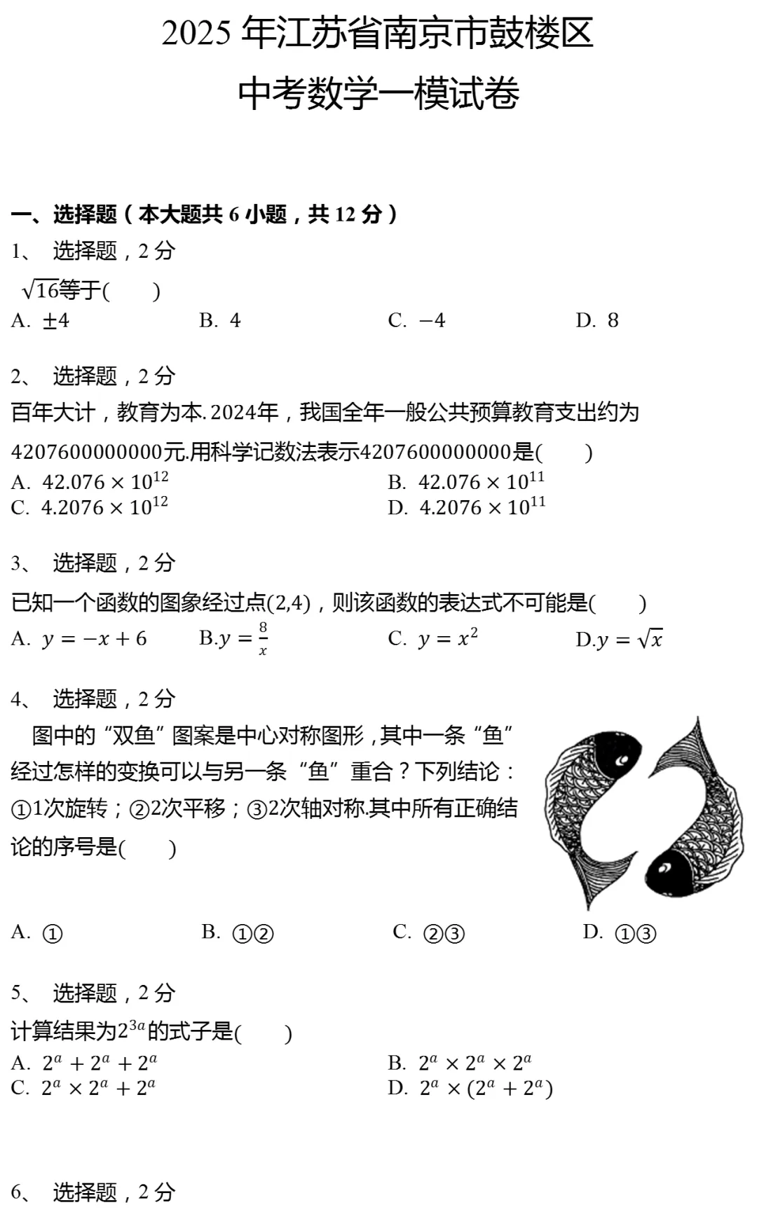 >2025年江苏省南京市鼓楼区中考数学一模试卷