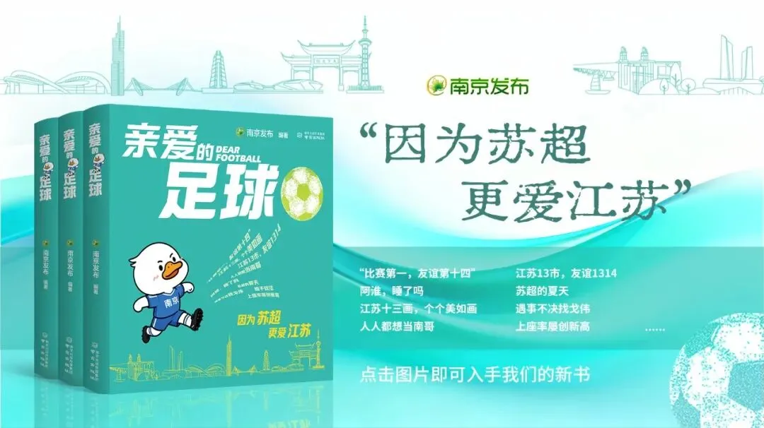 南京发布出品的《亲爱的足球》,目前已正式上架。全书十个章节,完整记录了南京参与“苏超”全过程。愿这本书,愿这份记忆,给你勇气,去开创属于你自己的、崭新的篇章。