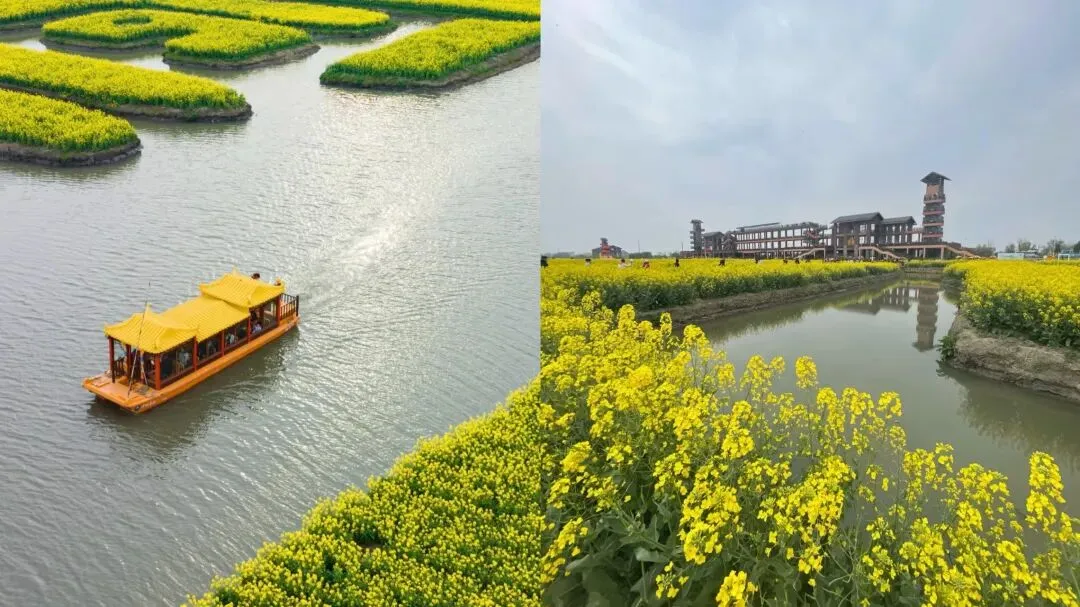 兴化 : 这里有独一无二的“千垛岛”水上油菜花田,可以坐船在花海中穿行,孩子的视角会觉得特别新奇有趣。