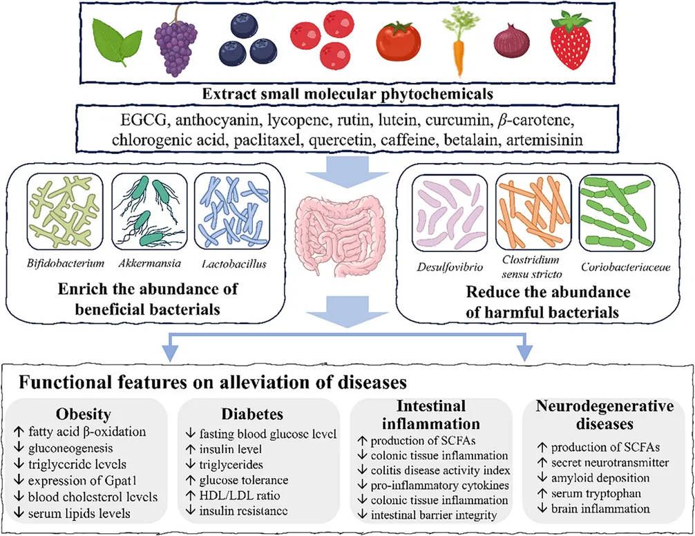 肥胖、2型糖尿病、慢性炎症及神经退行性疾病等慢性病在全球持续蔓延,精准营养——即根据个体基因与肠道微生物特征量身定制饮食干预方案——已成为应对这一挑战的迫切需求。研究表明,这些慢性疾病与肠道菌群失调密切相关,特定微生物通过与宿主肠道基因的互作加速疾病进展,这为植物来源的小分子活性物质(植物化学物质)提供了精准干预的新靶点。