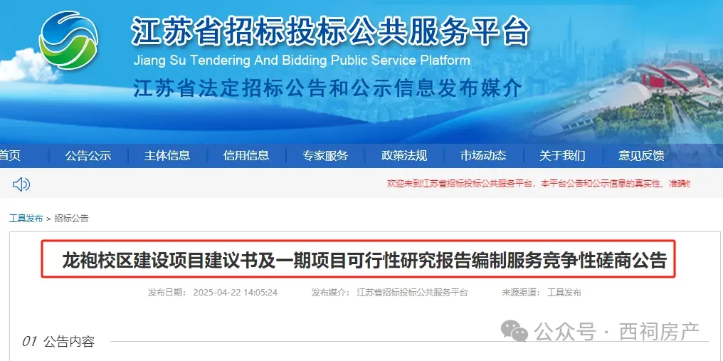 4月22日,龙袍校区建设项目建议书及一期项目可行性研究报告编制服务竞争性磋商公告发布,项目已具备招标条件。这意味着,龙袍校区一期将很快启动项目可行性研究报告研究。