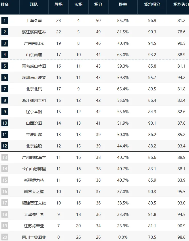 CBA第27轮,再赛6场,至此,本轮已赛8场,未赛2场。CBA最新积分榜,辽宁6连胜,南京胜浙江,郭昊文奠定球队老大地位。