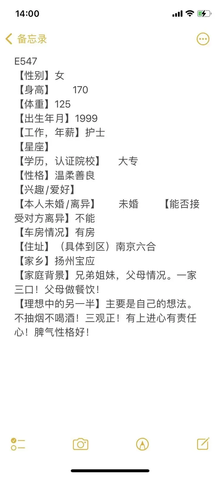 >南京脱单|99年,女,身高170,专科学历,护士工作,扬州人在南京,目前在六合区