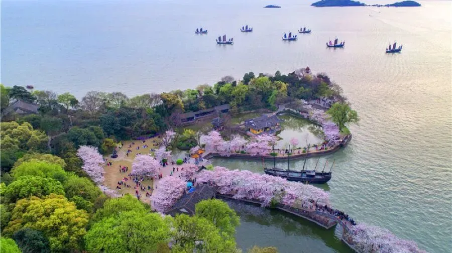 无锡市鼋头渚景区作为江南地区规模最大的山水园林胜境,这里的樱花最美。