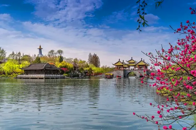 瘦西湖,有“园林之盛,甲于天下”之誉。瘦西湖主要分为14大景点,包括五亭桥、二十四桥、荷花池、钓鱼台等。