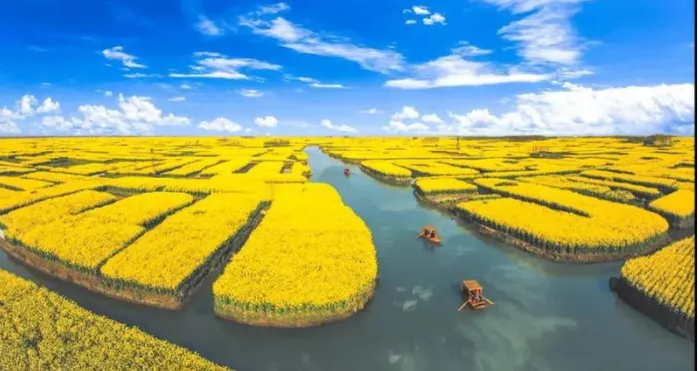 千垛景区以“垛田”特色地貌享誉全球。一幅“油菜花开金满地”的壮阔美景,吸引了众多前来观光的游客。千姿百态的垛田形成了上千个湖中小岛,蔚为壮观。“中国最美油菜花海”的壮阔景色令人赞叹不已。