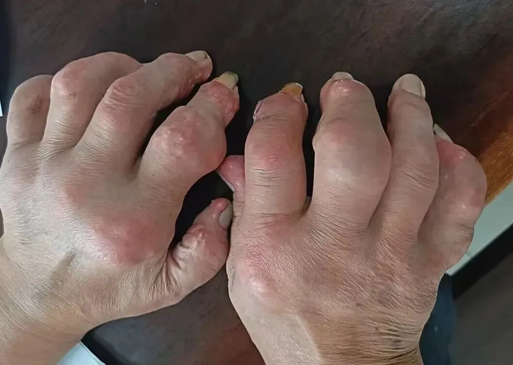 刘大爷得的啥病?痛风石。说白了,就是尿酸太高,尿酸盐结晶在关节、皮肤下面慢慢堆,像“小沙子”一样越攒越多,最后聚成硬邦邦的“石头”。