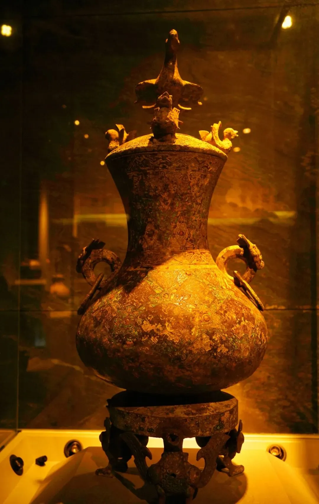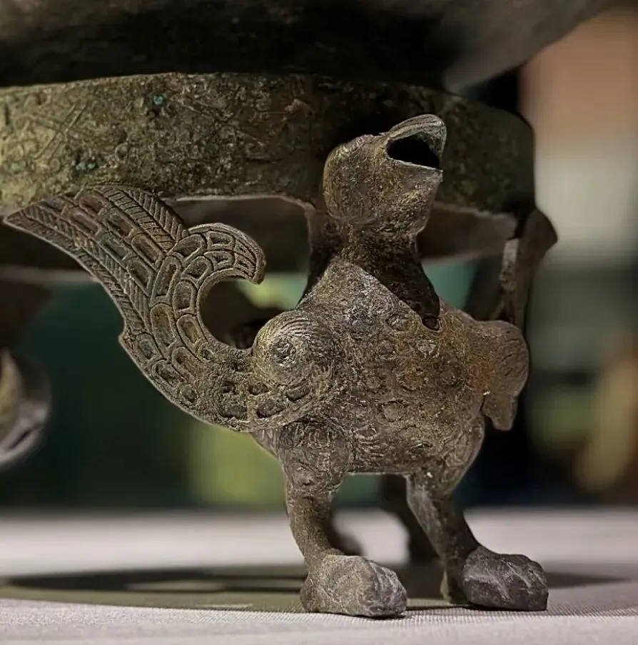 • 天人沟通:盖顶鸿雁飞升、壶身云纹环绕,寄托着古人“以酒敬天、沟通人神”的祭祀理想,是战国礼乐文化与宗教信仰的融合。