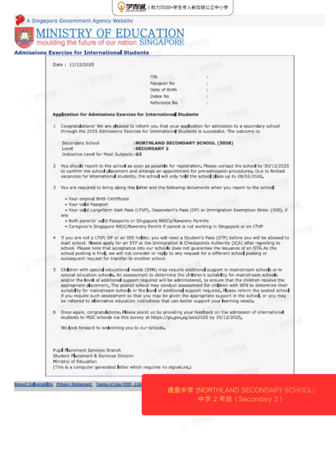 最终,Joey 顺利通过考试,从基础薄弱、作文5分,到成功考上新加坡公立中学,Joey 的故事告诉所有家长:不是只有成绩好的孩子才能去新加坡读书,普通孩子只要规划合理、坚持备考,一样可以实现逆袭。