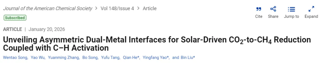 三院院士!新加坡国立大学刘斌/何迁&南京大学姚颖方最新JACS:不对称双金属界面助力太阳能驱动CO₂还原制CH₄耦合C-H活化!