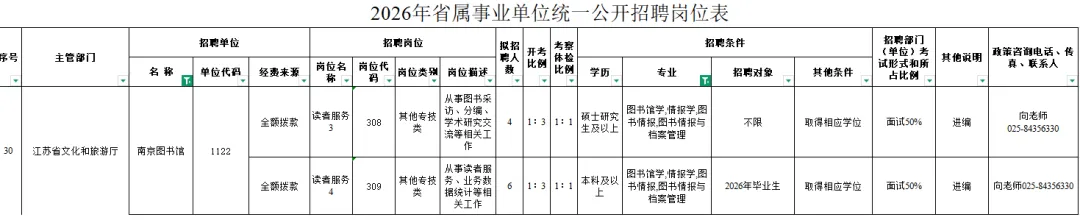 【招聘信息:公共馆】南京图书馆2026年招聘(3.25截止)