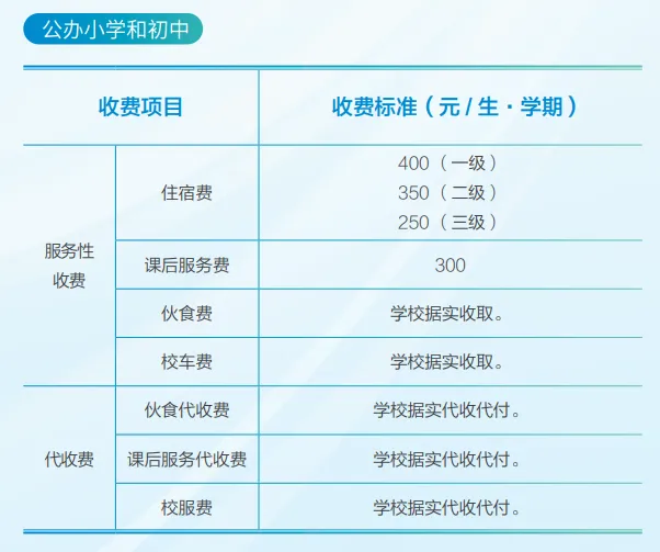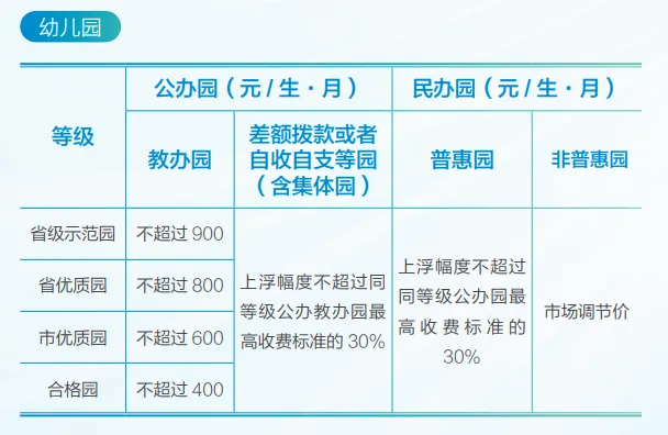 南京幼儿园、公办中小学收费标准