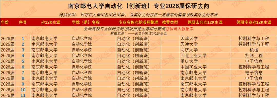 南京邮电大学自动化创新班专业2026届有本科毕业生27人;共有11人获得保研资格;专业平均保研率为:40.74%其中:保研本校:5人;保研外校:6人