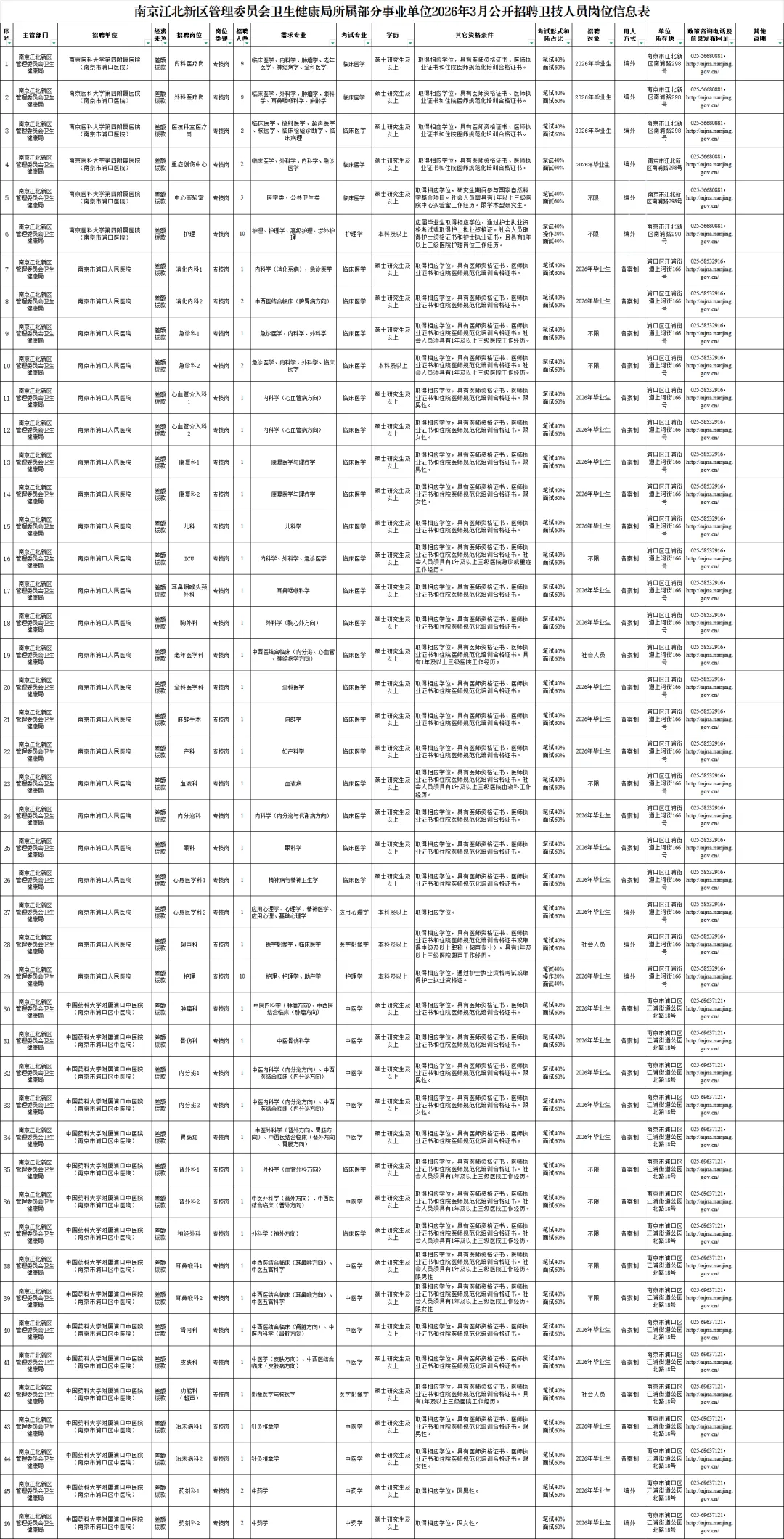 附件:南京江北新区管理委员会卫生健康局所属部分事业单位2026年3月公开招聘卫技人员岗位信息表.xlsx