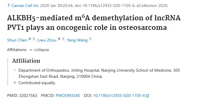 题目:ALKBH5-mediated mA demethylation of lncRNA PVT1 plays an oncogenic role in osteosarcoma