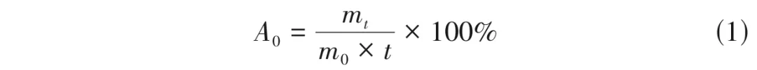 在载氧体磨损实验中,所测得的载氧体颗粒的磨损率定义为A0,其计算如式(1)。