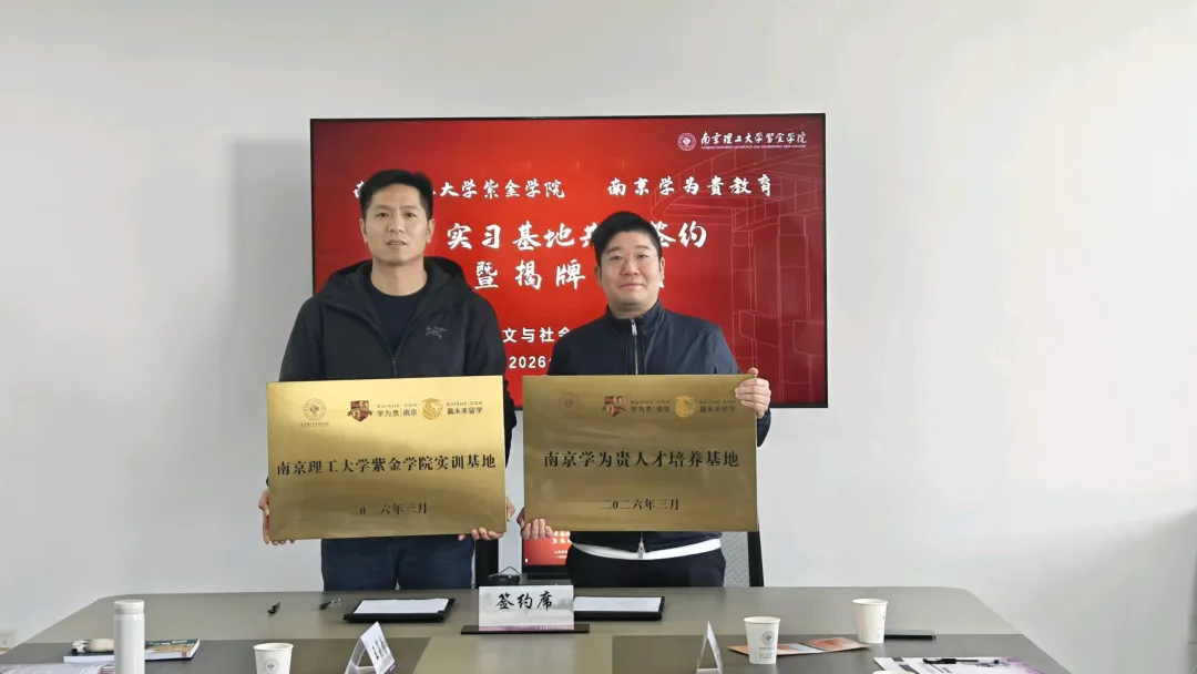 2026年3月13日下午,南京理工大学紫金学院与南京学为贵“校企实习基地共建签约暨揭牌仪式”在南京理工大学紫金学院举行。