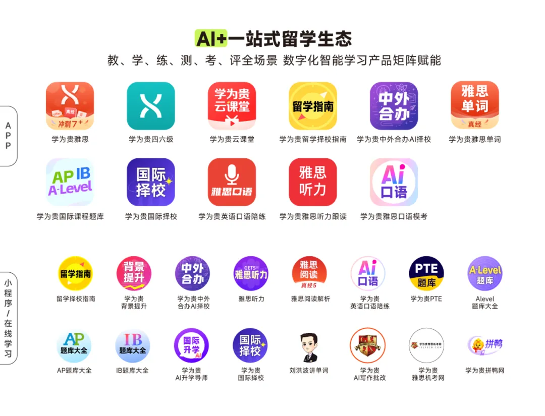 作为国内领先的国际教育机构,学为贵集团构建了集专业性、系统性与创新性于一体的一站式留学服务生态,在学术理论、教研教学、图书出版、科技创新及个性化服务等领域积淀深厚。围绕自主研发的真经教学体系,学为贵不仅累计出版图书教材上百本,总销量突破500万册,更将名师智慧、专业备考方法论与留学数据库深度融合前沿AI大模型技术,以前瞻性视野推动国际教育从“AI+”到“AI-Driven”跨越式升级,树立了行业智能化、个性化教学教研新标杆。学为贵原创图书教材
