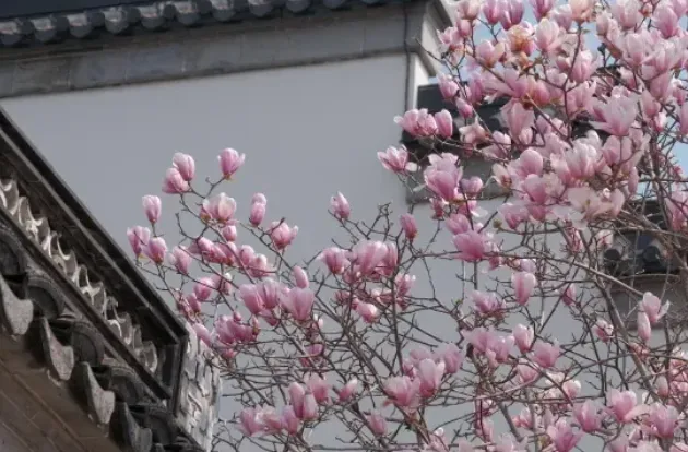 穿过老门东的青石板路,不经意间便会与一树玉兰相遇。马头墙的硬朗线条被粉白柔化,花朵从巷陌深处探出头,像是旧时画卷里的一笔。青砖黛瓦前,花影落在花格窗上,与飞檐遥相呼应,人立花下便是天然的水墨小品。