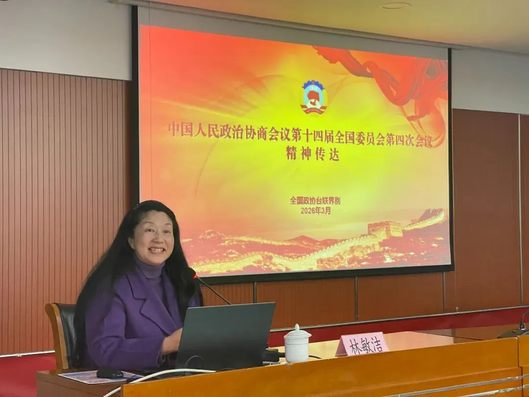 全国人大代表、全国台联副会长、台盟市委会主委邹振球,全国人大代表、台盟市委会委员、玄武区支部主委刘忠斌,全国政协委员、市台联会长、台盟市委会副主委林敏洁分别传达了2026年全国两会精神。江苏省台联秘书长、办公室主任周振晴主持会议。