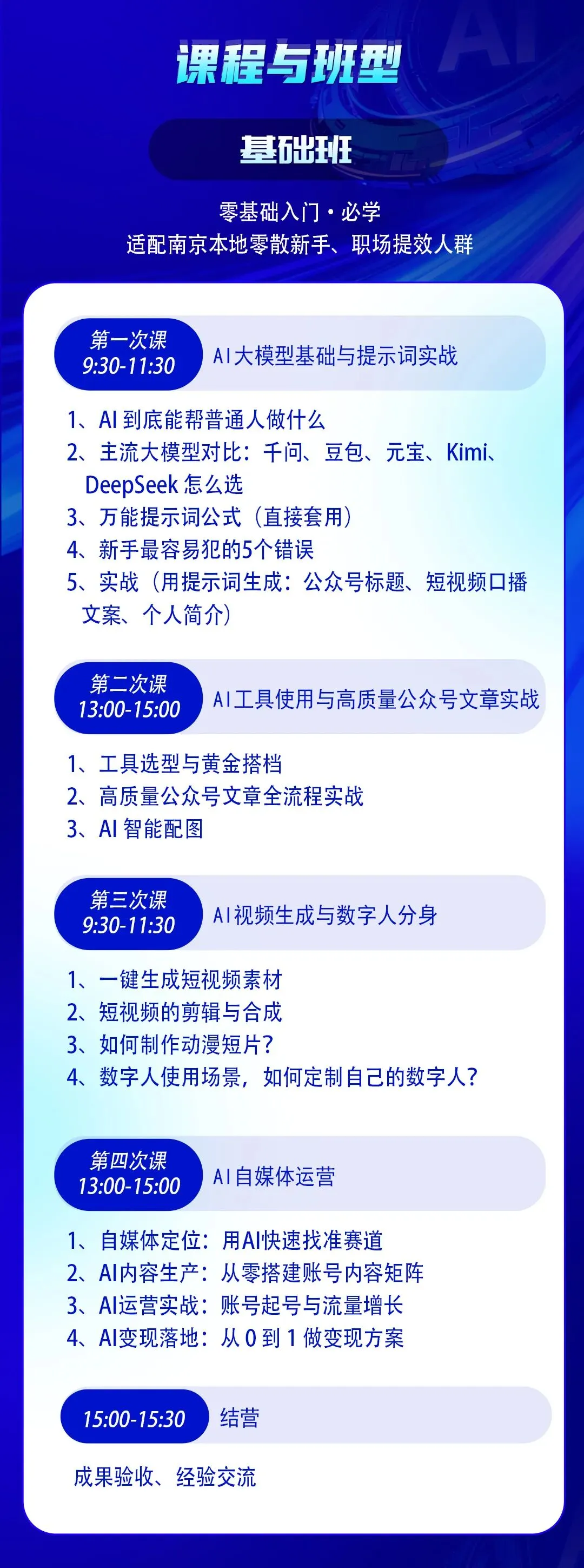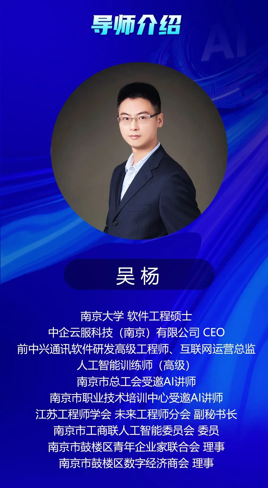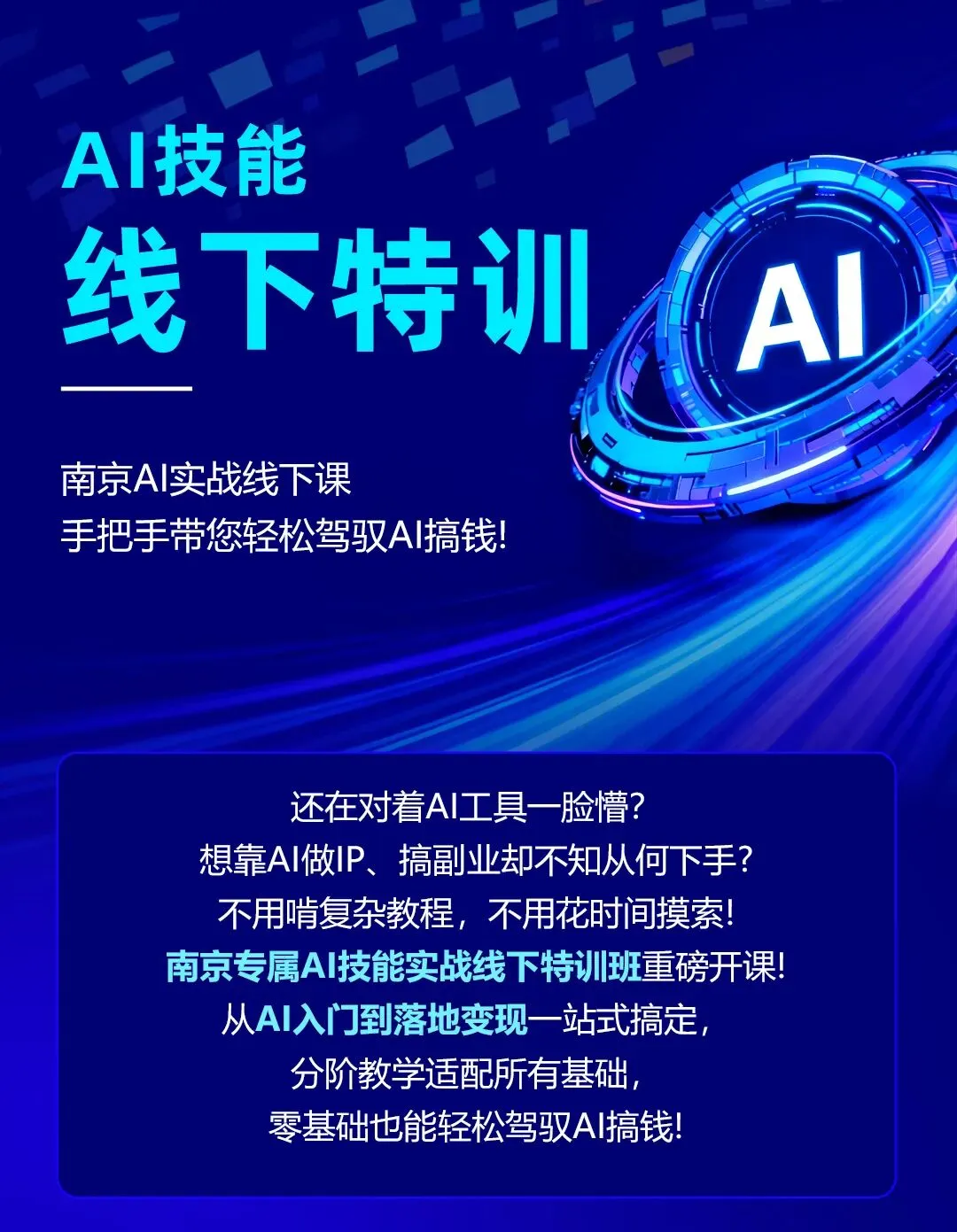 南京本地「AI技能实战课线下特训班」重磅来袭,由南京大学软件工程硕士、前中兴通讯资深工程师吴杨老师亲授,4次线下手把手实操,零基础也能快速掌握AI变现技能!