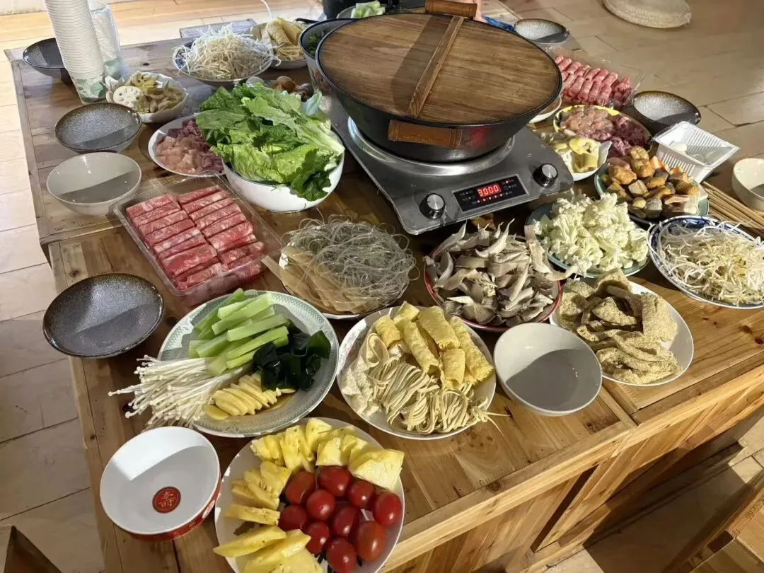 也会有炒菜。大家一起帮厨,捡菜、洗菜、切菜、炒菜都行,如果贡献小那就等吃完了收拾、洗碗。