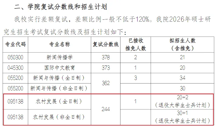 南京林业大学农村发展专业 2026 年硕士研究生复试信息已公布,很多考生都在关注分数线、招生计划、复试形式与录取占比。今天给大家整理完整信息!复试分数线与招生计划